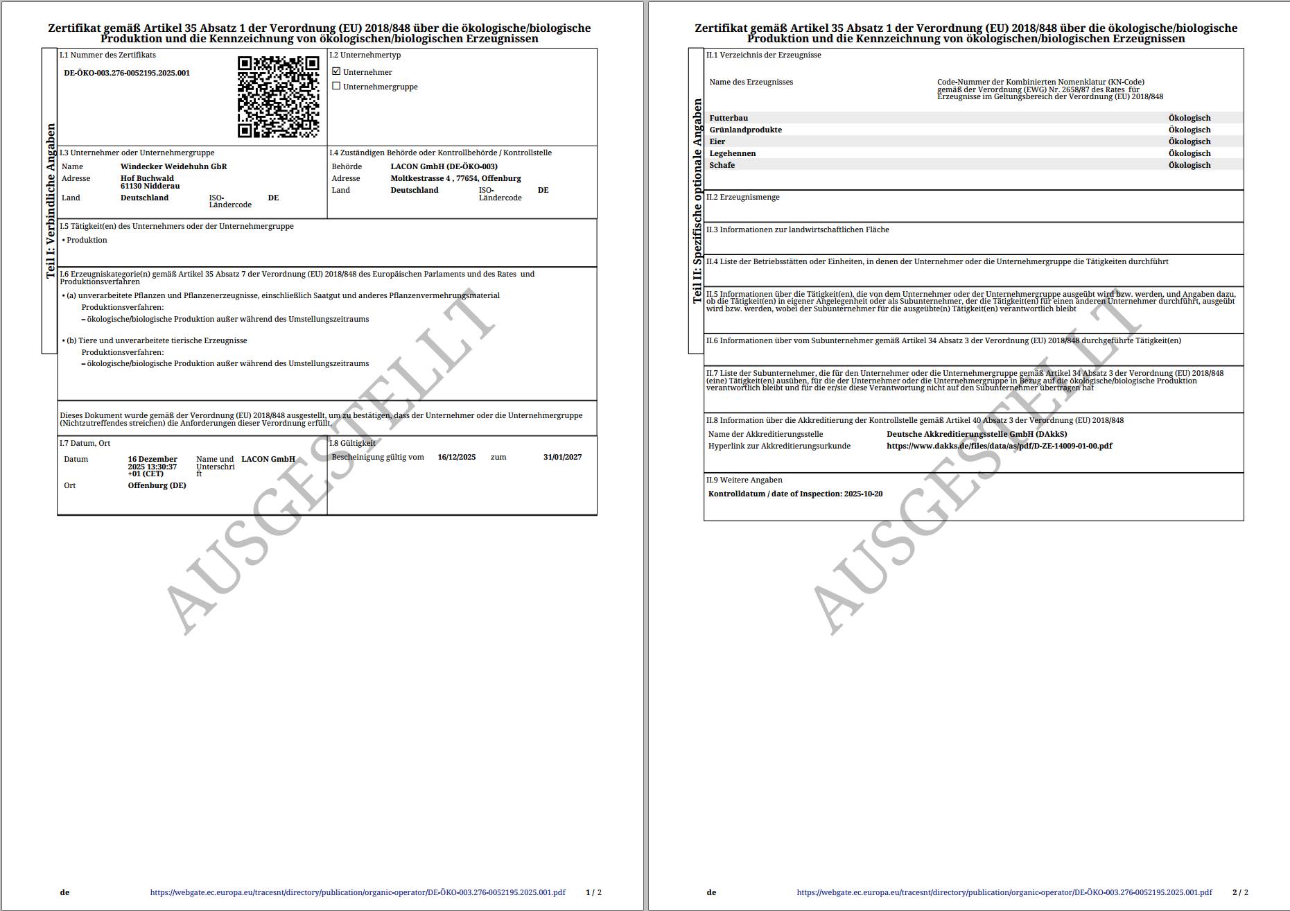 Mit dem Kauf unserer Bio-Eier unterstützen Sie die nachhaltige Form der Landbewirtschaftung und die artgerechte Haltung der Hühner, denn wir sind nach dem Naturland Bio-Standard und dem KAT (kontrollierte alternative Tierhaltung) zertifiziert.